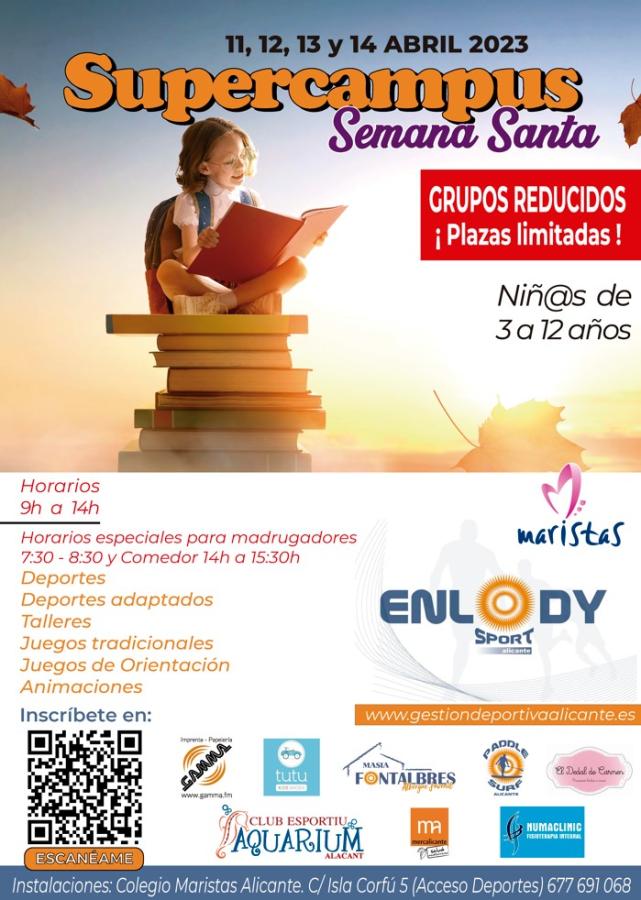 la web https://www.gestiondeportivaalicante.es/supercampus-semana-santa-2023/ , y en nuestro teléfono 677691068.