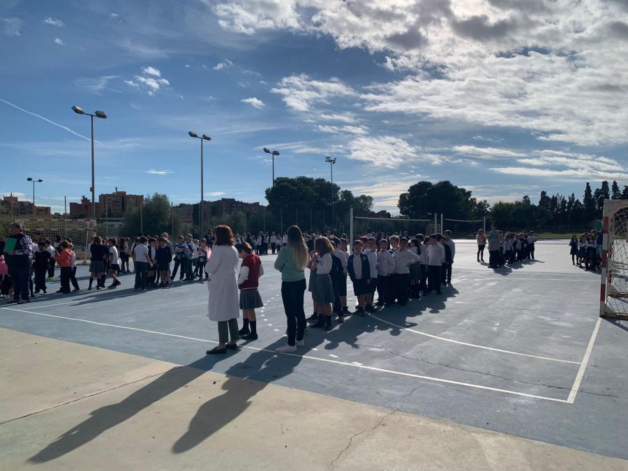 Hoy hemos realizado el simulacro de evacuación correspondiente a este curso y nos han felicitado por el buen comportamiento y orden de nuestros alumnos en los desplazamientos.Ahora llega el momento de explicación de porqué y para qué sirve realizarlo y argumentar las pautas y conductas que tenemos que realizar en el caso de un inccendio verdadero. Gracias a Quirón prevención, al coordinador de evacuaciones y responsable de medidas a a adoptar y por supuesto a todos nuestras/os chicas/os por el estupendo y fenomenal rol realizado en el trayecto. Esperemos que siempre sea simulado pero ... no viene nada mal "entrenar" estas situaciones