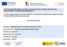 Dentro de nuestro Plan de Ecología, y siguiendo el Proyecto acogido al programa de incetivos ligados a la implantación de instalaciones de energías renovables térmicas en diferentes sectores de la economía, se realiza la sustitución del sistema ACS para las duchas del pabellón por uno aerotérmico con mejor rendimiento.