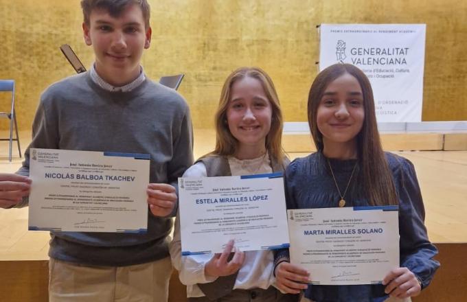 Ayer en un precioso acto academico oraganizado por la GVA y celebrado en el ADDA, nuestros alumnos: Marta Miralles Solano, Nicolás Balboa Tkachev y Estela Miralles López recibieron el diploma a la excelencia en el rendimiento académico expedido por la...