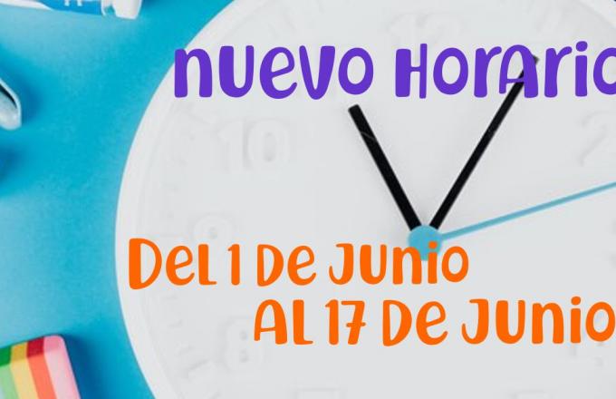 Con la llegada del mes de junio, el horario cambia a jornada intensiva hasta el 17 de junio, fecha que terminan las clases de este curso. La Jornada intensiva abarca desde las 9 hasta las 13h para infantil,  primaria y primer ciclo de secundaria.